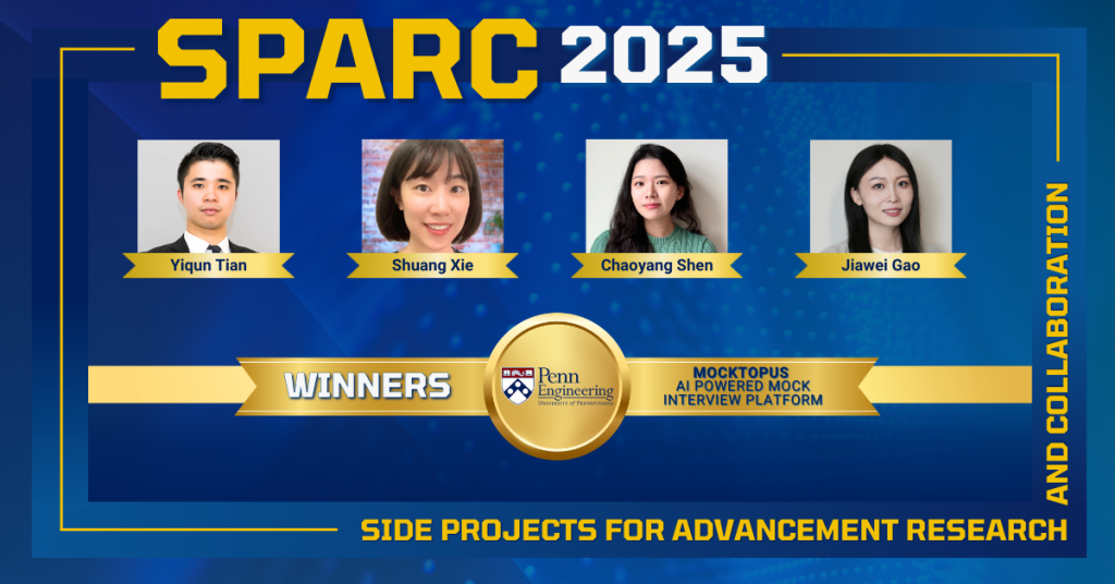SPARC 2025 was made possible through the efforts of many—our students, judges, mentors, and, in particular, Penn Engineering’s dedicated Career Advisor, Saryu Sanghani, who guided this year’s competition. Congratulations as well to the nine teams who completed the competition and presented their projects for evaluation by our esteemed Penn Engineering alumni judges: